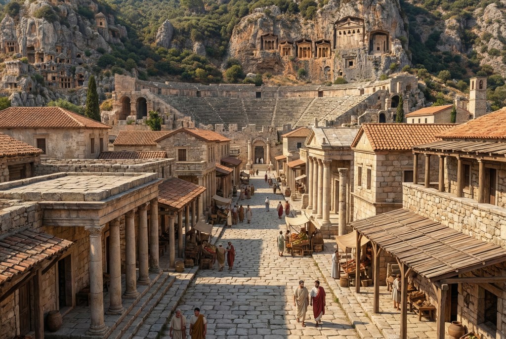 Akdeniz’in en eski uygarlıklarından biri olan Likya; yüksek dağları, denize uzanan vadileri ve kaya mezarlarıyla gizemli bir medeniyetti. Kendilerine özgü alfabeleri, şehir birlikleri ve bağımsızlıklarıyla tanınıyorlardı. Likya kentlerinden biri olan Myra ise tiyatrosu, kaya mezarları ve politik gücüyle bölgenin en önemli merkezlerinden biriydi.