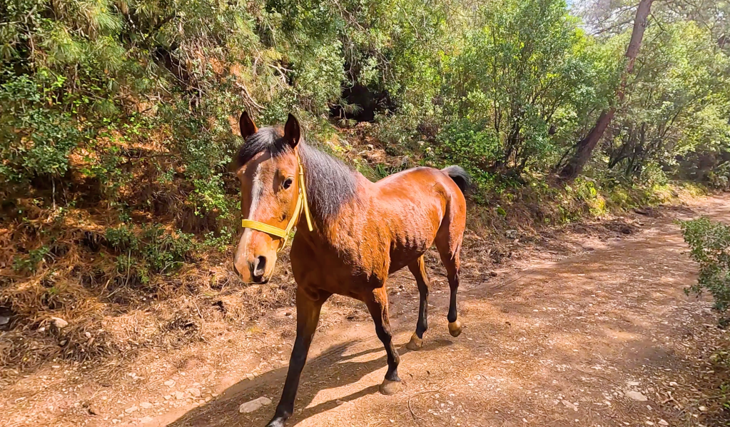Çok güzel bir orman yoluna girdim. Buradan böyle sessiz sessiz sakin sakin kuş seslerini dinleyerek yürüdüm. Faralya’ya yaklaşırken yanımdan iki at geçti. Biriyle göz göze geldim. Atları çok seviyorum ama büyüklükleri beni ürkütüyor, korktum biraz. Ama yine de atla göz göze geldiğim o an inanılmazdı, tam gözümün içine baktı. Teşekkürler bu an için.