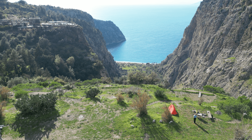 Ovacık’tan çıktıktan sonra yaklaşık 7 saatte 13 km yol aldım, 750 metre kadar da irtifa kazandım ve çok yorulmuş bir halde, ayaklarım yan yan giderken Faralya’ya ulaştım. Kelebekler Vadisi’nin üstündeki kamp yerine ulaştığımda kimsenin olmadığına şaşırdım. Ama sonra fark ettim ki erken gelmişim. Kendimle gurur duydum tam bu noktada, “Aferin kız” dedim kendime, “Başardın işte.”