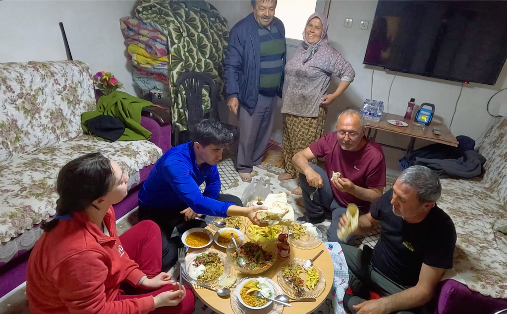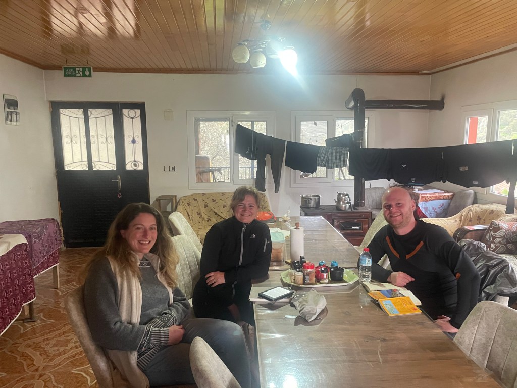 Akşam yemeği için yürüyüşçü arkadaşlarla bir araya geldik. Muhtarın eşinin yaptığı çeşit çeşit yemekleri balkonda değil de kuzinenin olduğu “benim” odamda yedik çünkü beklenen yağmur başladı.