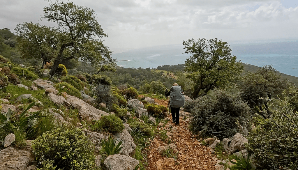 Kahvaltımı yaptıktan sonra saat 10.00’da Sidyma Antik Kenti’ne ve muhtar ile eşine veda edip yeniden görüşmek üzere sözleşip yola düştüm. Bugün 6 kilometrelik kısa bir yürüyüşüm olacak çünkü öğleden sonra ve gece şiddetli yağmur ve fırtına bekleniyor. Yağmurdan önce Bel’deki Fatma Pansiyona ulaşmak istiyorum.